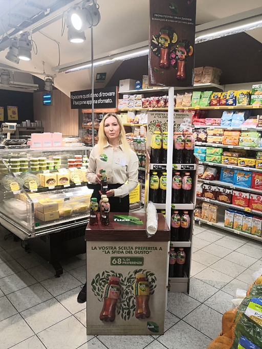COCA COLA Promozioni dedicate a FUZE TEA, COCA COLA, FANTA e SPRITE, con attività di visual merchandising.