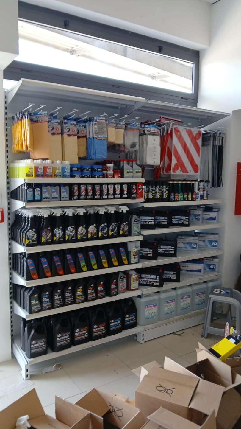 Allestimento degli spazi espositivi per la gamma di prodotti di ricambio auto.